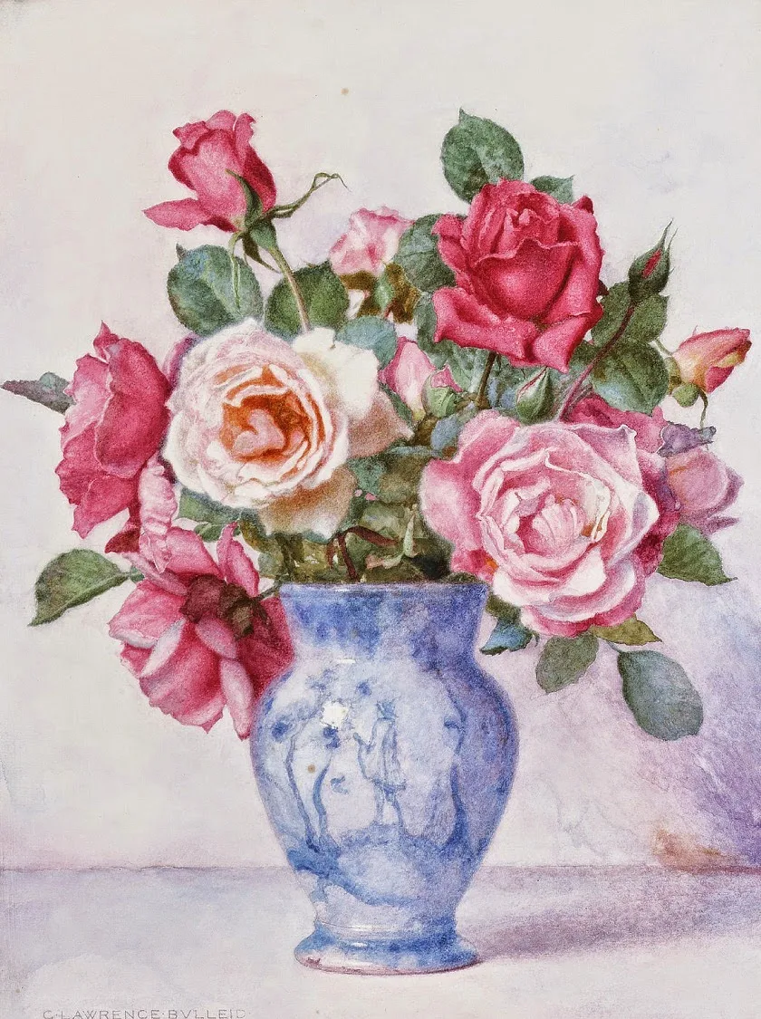 In later life, he explored more naturally observed themes, creating relaxed portraits and works of floral or quiet still life arrangements, sometimes in a manner inspired by the Dutch masters of the 17th century. George Bulleid died aged aged 75 in the Autumn of 1933.