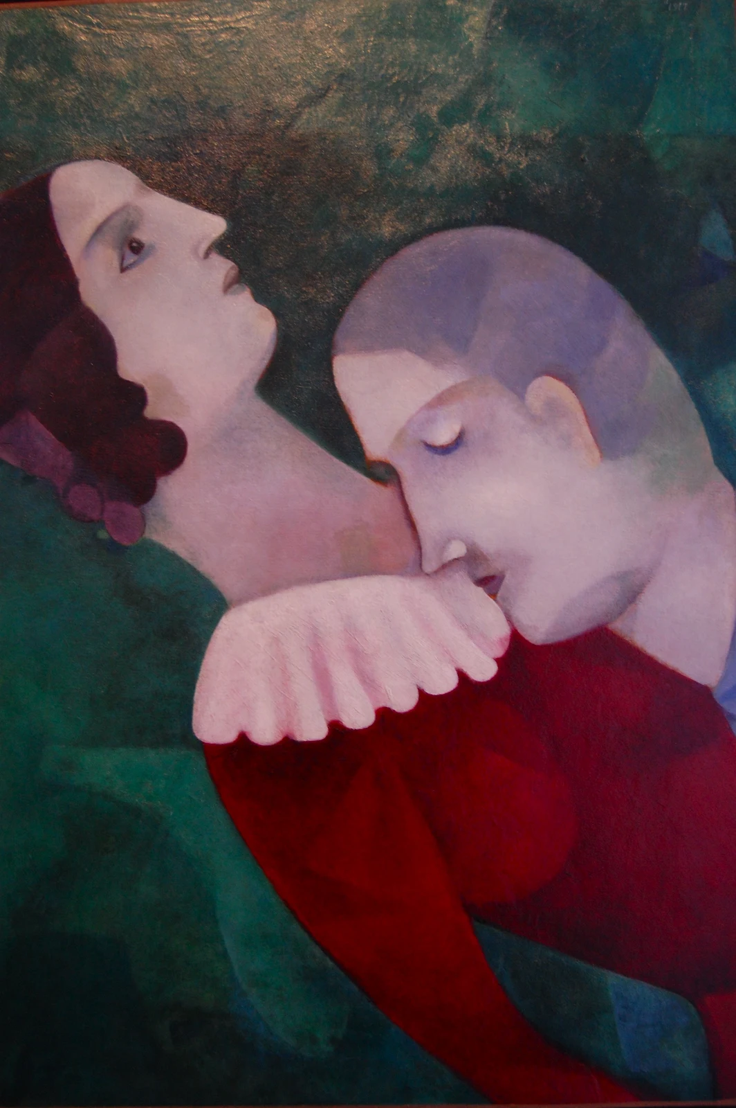 In 1915 he married Bella Rosenfeld, the daughter of a wealthy Vitebsk merchant; among the many paintings in which she appears from this date onward are the depiction of flying lovers entitled Birthday (1915-23) and the high-spirited, acrobatic Double Portrait with a Glass of Wine (1917).