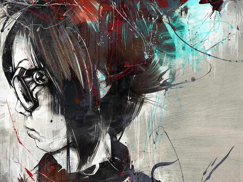 Tante le fonti di ispirazione, alcune anche tra i grandi maestri del passato: Van Gogh, Picasso, Basquiat e, naturalmente, Pollock. Matrici astratte e figurative si bilanciano perfettamente nelle opere di Russ, che realizza prevalentemente ritratti “urbani” e dal gusto vagamente stylish, in cui si affermano con determinazione tanto la tecnica tradizionale del disegno quanto la gestualità e la forza di un segno pittorico “espressionista” tutt’altro che casuale.