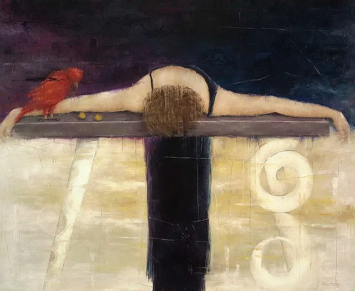 Hopper's paintings are compelling and abstractly interpretive. She creates delicately modulated surfaces with subtle imagery. Her color use is strong, yet positioned to create a quiet contemplation and colorful vivaciousness. While she develops figurative images with color washes and markings that are clearly defined, the edges leave an openness for imaginative completion. Erica Hopper's work is in both private and corporate collections throughout the United States.