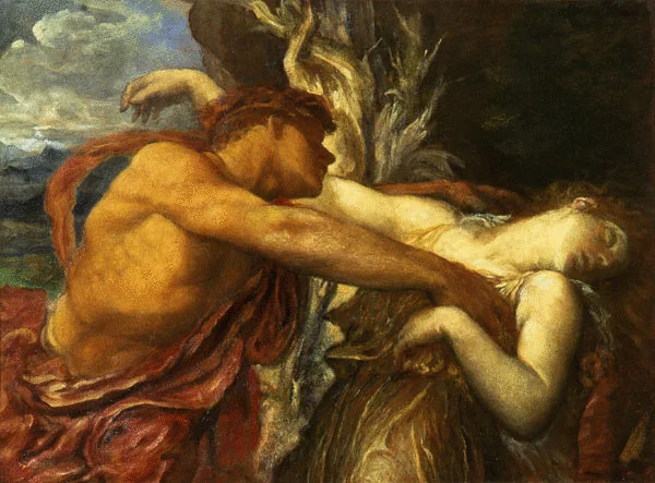 George Frederic Watts [1817-1904], British painter, was a popular Victorian painter and sculptor associated with the symbolist movement. Watts became famous in his lifetime for his allegorical works, such as Hope and Love and Life. These paintings were intended to form part of an epic symbolic cycle called the "House of Life", in which the emotions and aspirations of life would all be represented in a universal symbolic language.