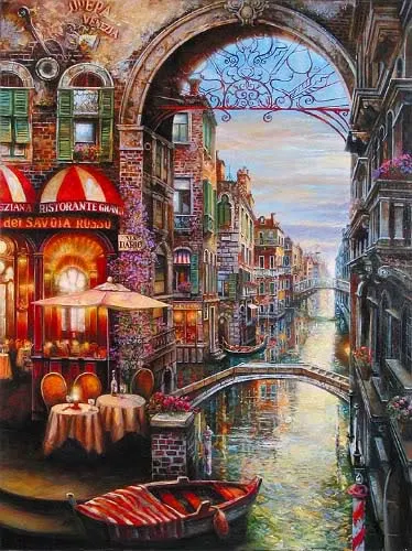 The union of his traditional education and his personal creative style helped him become the versatile master artist he is today. Vadik Suljakov is a master Russian artist who brings his visions of Europe to the world. From cafes and canals, to the narrow alleyways and stairs, Suljakov paints the beloved cities of the world in their timeless beauty.
