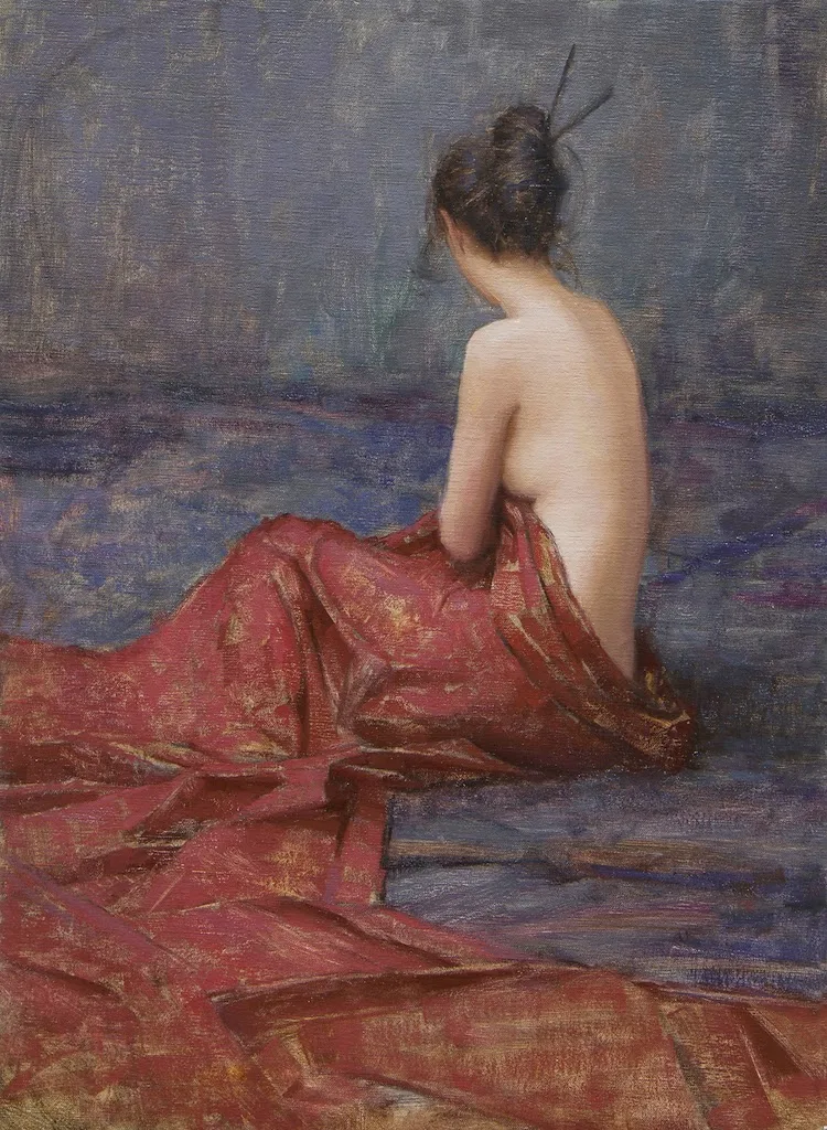 Within, there is a powerful sensuality, somehow restrained by paint, by line and composition, and yet deeply feminine, the sensibility like that of Sargent’s notorious yet enduring work Madame X.
