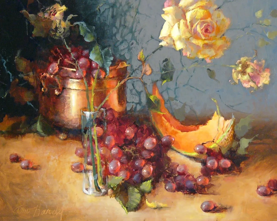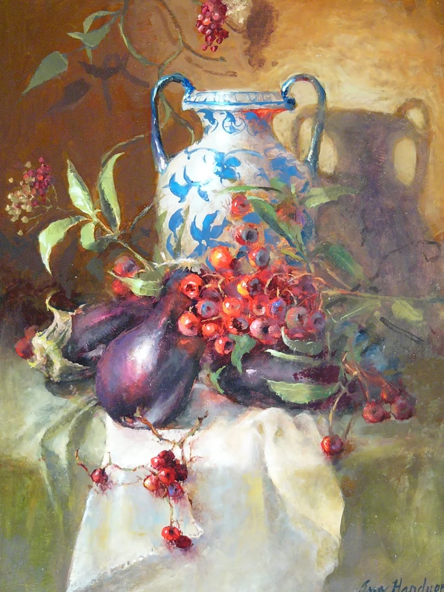 She planned and built all three. Through understanding this, you can see that she is very much an independent thinker and is in touch with her inner child. For Ann, life is fun and focused and hopefully balanced. All subject matter is included in Ann’s work, with an emphasis on still life. She uses a lot of transparent glazes and heavy opaque in a painting.
