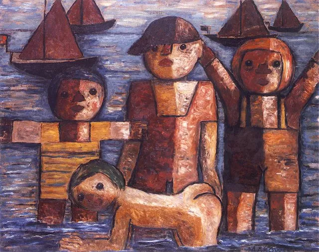 Later, his favorite subjects were carnivals, fairs and children, done in a style inspired by the old Dutch Masters, Polish folk art and naïve art.