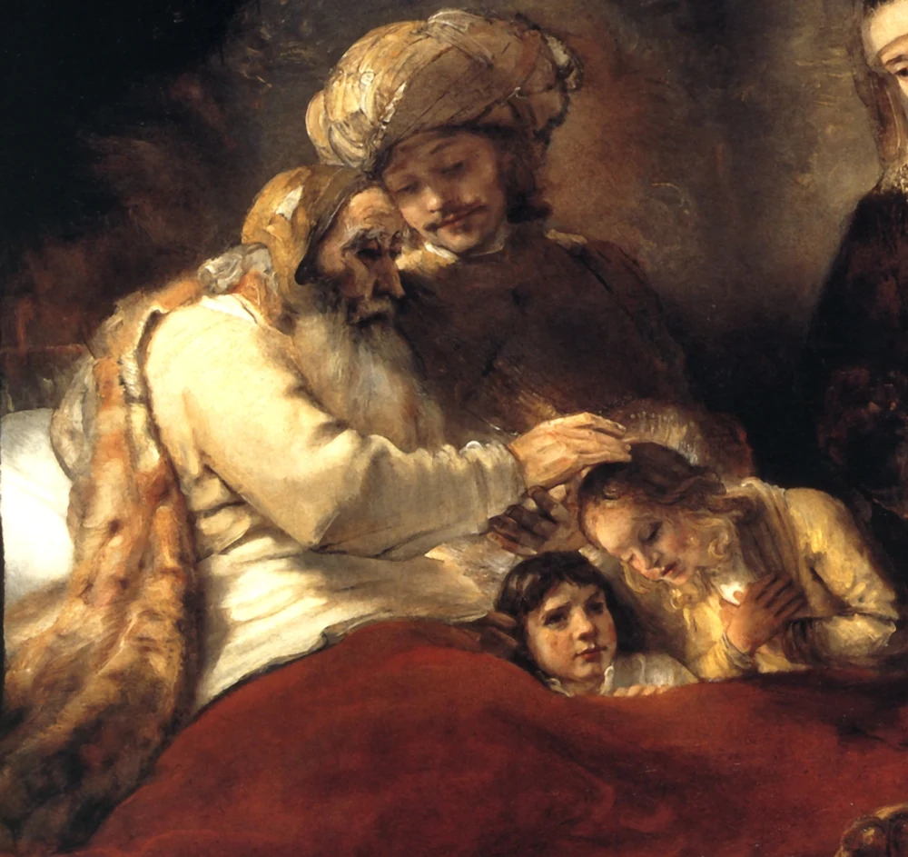 Colour, which up to this point he had increasingly sacrificed to light, now returned-usually a strong red-in the centre of some of his images, such as Jakob’s Blessing and, later, in the so-called Jewish Bride. Compositions-which were often diagonal in early works by Rembrandt, according to the logic of the concentrated light-were now more frontally constructed.