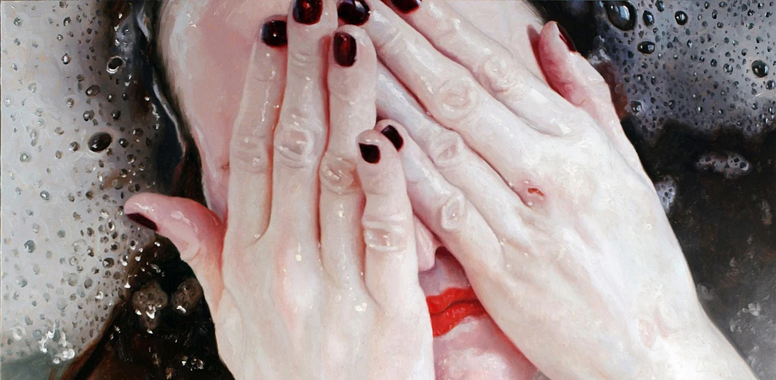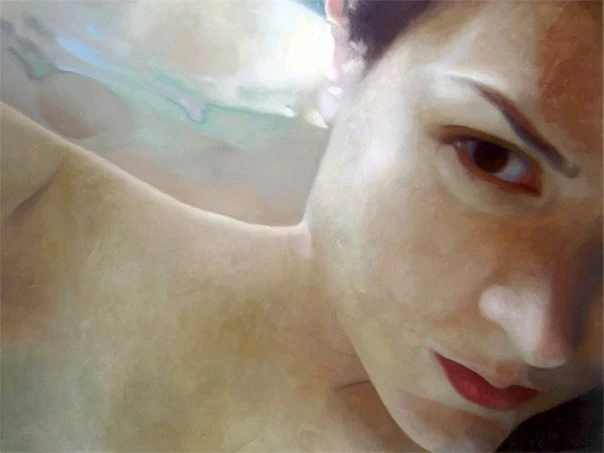 While her representation of the figure is often almost perfectly photographic in its depiction, she blurs and fuses layers of space to create immersive abstraction that feels uniquely intimate and provocative; she often includes the use of glass, clear vinyl, water, steam, and shallow spaces to distinguish a nearly invisible line between the foreground and backgrounds of her pieces.