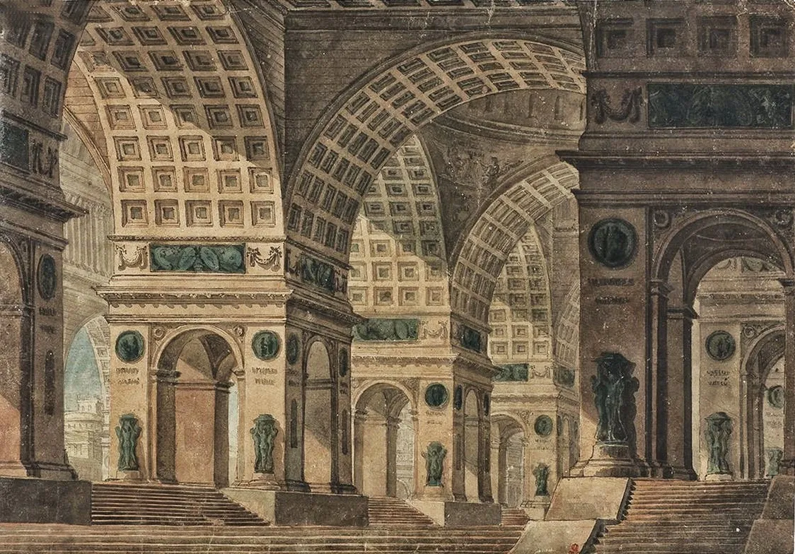 Basoli was also offered commissions for scenography from theaters in Rome in 1815, and from Naples, by request of Gioacchino Rossini, in 1818 both of which he refused.