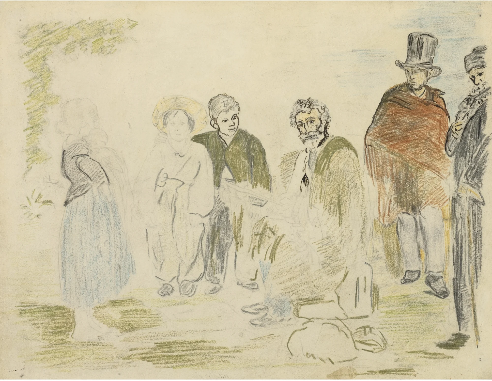 Egli, tuttavia, conserva sempre una maggior attenzione alla figura e continuerà sempre ad utilizzare il nero come colore, cosa che gli impressionisti non fecero mai.