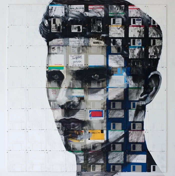 He is best known for his floppy disk paintings, placing an emphasis on recycling and the reuse of personal objects as a central theme.