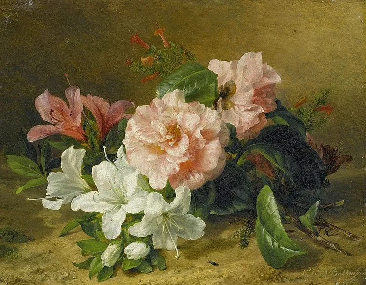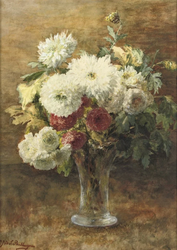Came from an artistic family, the still life Dutch painter Gerardina Jacoba Van de Sande Bakhuyzen [1826-1895], was a 19th-century painter from the Northern Netherlands. Her father was the painter Hendrik Van de Sande Bakhuyzen, and her brother was the painter Julius Jacobus Van de Sande Bakhuyzen.