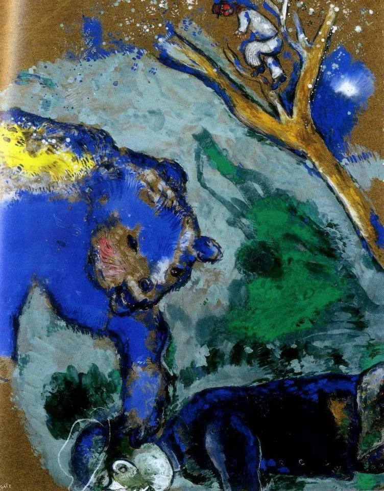 La splendida illustrazione delle Favole di La Fontaine, iniziata da Chagall nel 1927 e conclusasi tre anni dopo, fu eseguita su commissione di Ambroise Vollard.