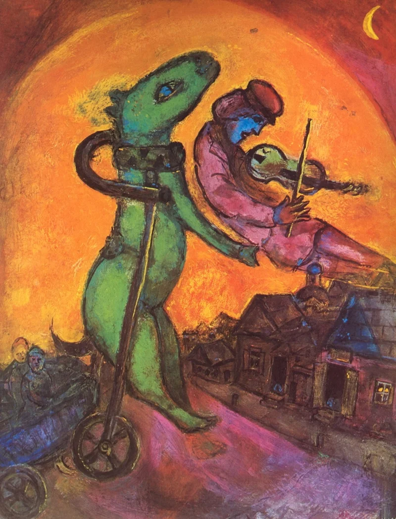 Quando, sul finire degli anni quaranta, esplose la fama internazionale di Chagall, alcuni musei, in testa il MoMa di New York, allestirono le prime retrospettive a lui dedicate: quei «favolosi» animali, un po' alla volta, cominciarono a uscire dalla tana.