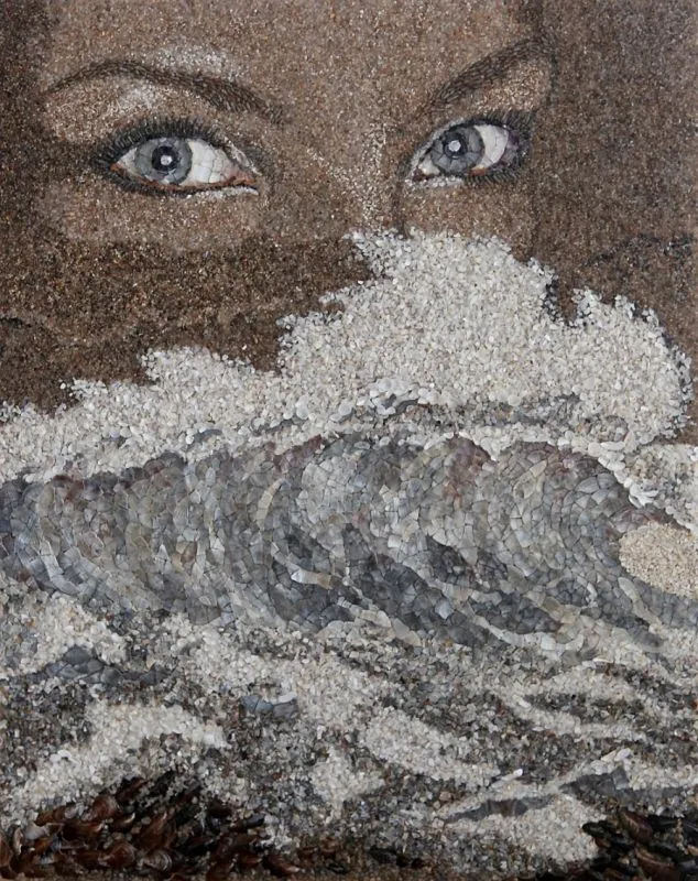 Unique sand and shell mosaic is stored in all the wilderness shades of natural materials.