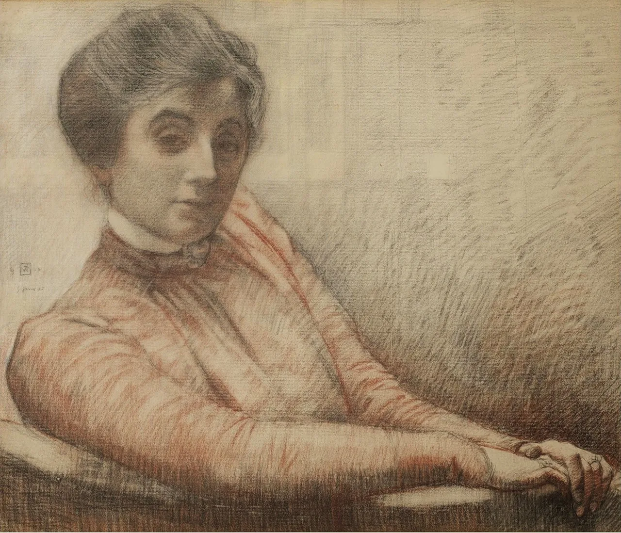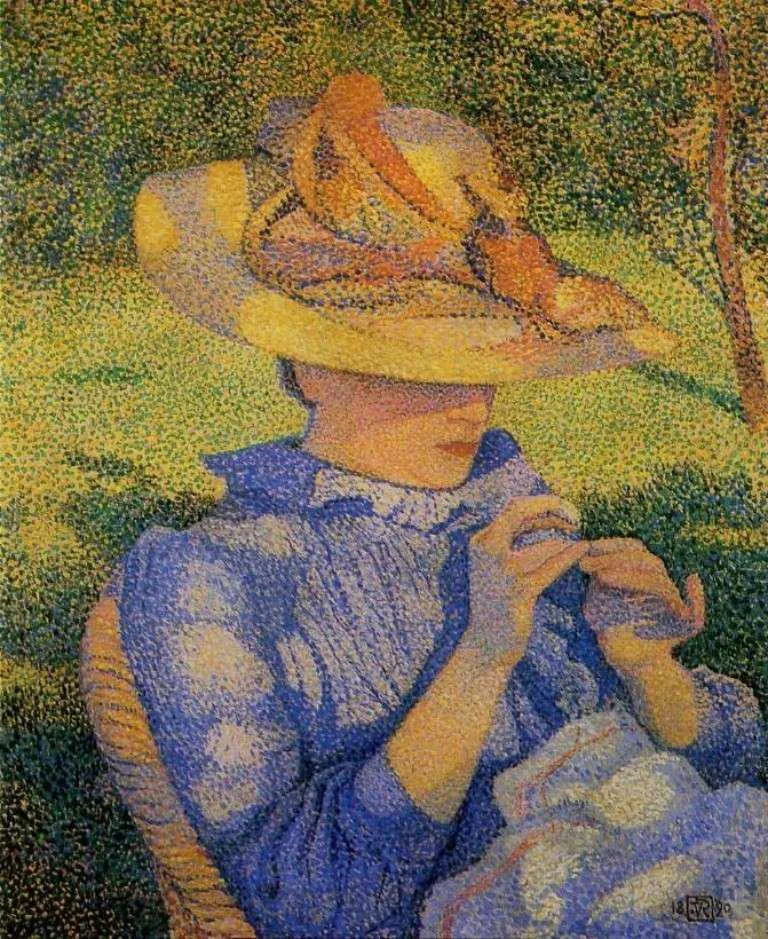In 1887 van Rysselberghe already experimented with this style, as can be seen in his Madame Oscar Ghysbrecht (1887) and Madame Edmond Picard (1887).
