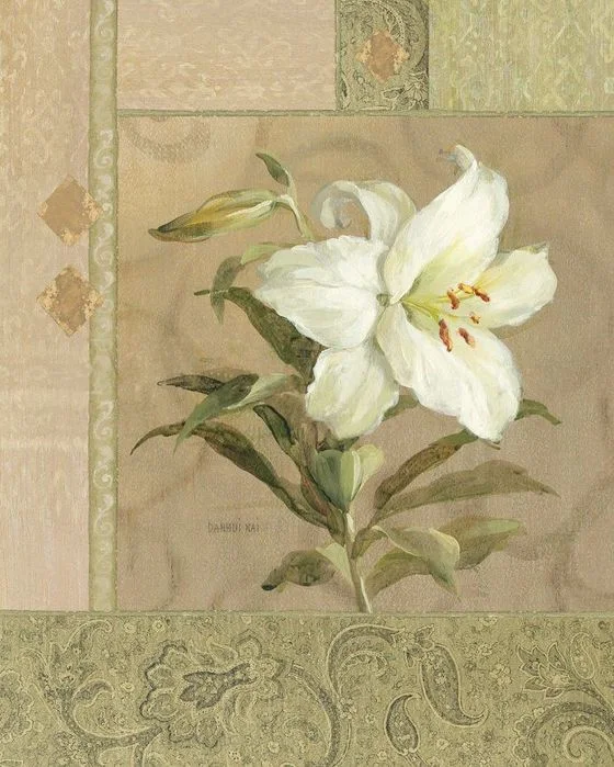 Danhui Nai, Chinese painter, was born and raised in mainland China. As the child of a sculptor and a painter it is no small wonder that she showed an interest in art at an early age. After college, Danhui Nai moved to New York City where she worked as a textile designer. She studied at the Fashion institute of Technology at night and also took a summer course in French costume and interior design in Paris. She has a flower garden outside her studio and loves to paint in the garden when weather permits. Her antique roses and other flowers are among her favorite subjects.