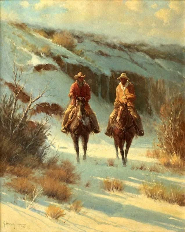 His scenes are warm, thoughtful portraits of our country’s bustling cities in a more genteel era and outstanding Western sagas of working cowhands at home in rugged landscapes.