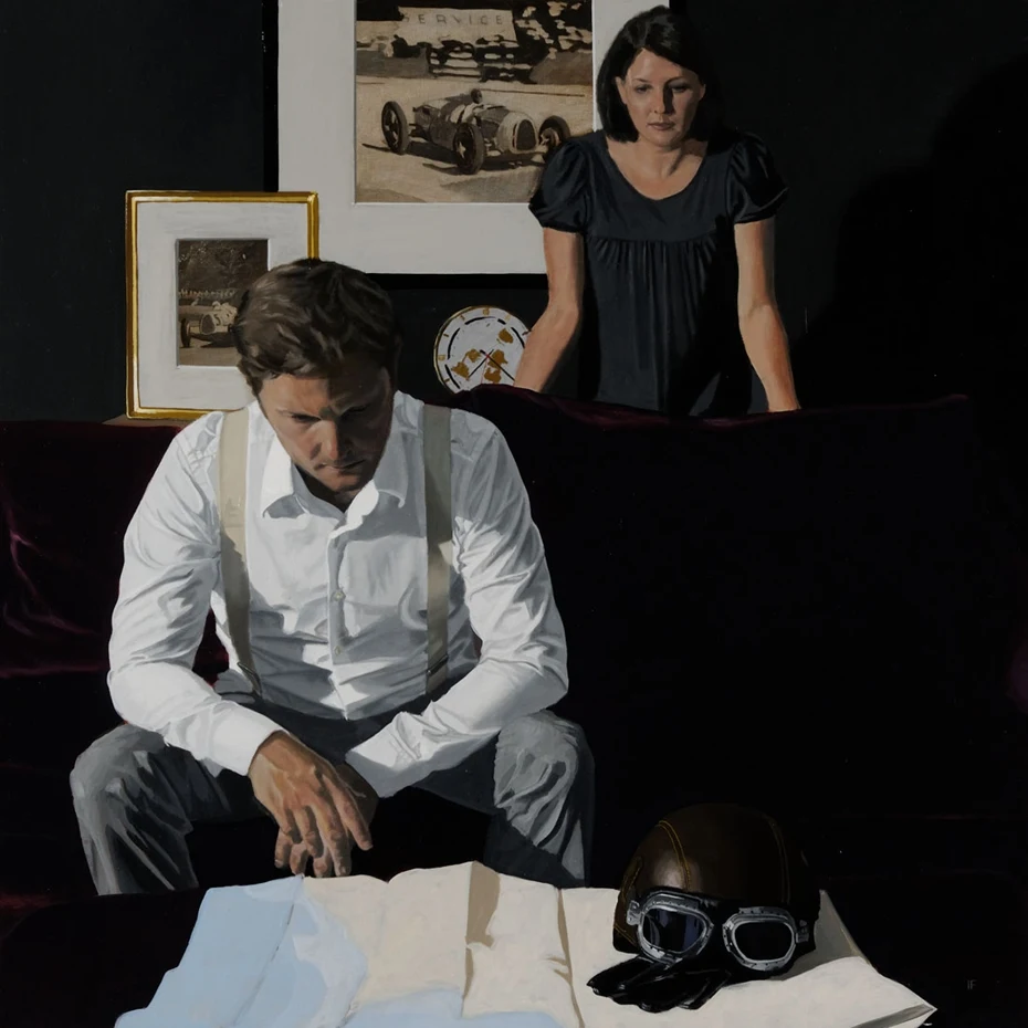 This is accentuated by the formality of his young self-engrossed characters and emphasised by the light and shadows reinforcing their emotional detachment.