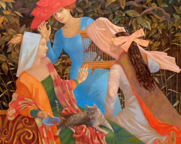 Russian painter Ольга Орешникова was born in St Petersburg, a member of one of the most prominent families of artists. Her paternal grandfather, Professor Oreshnikov, was Rector of the Academy of Fine Arts in St Petersburg from 1953-1978. He was also one of the leading artistic figures in the city and a member of the Soviet Academy. Olga’s maternal grandfather was Roman Kotlarevsky, a renowned composer and professor of composition at the Conservatory of Music. Her parents and close relatives are all either painters, art historians or practising musicians.