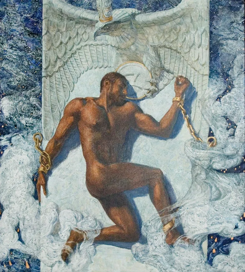 Referring to the mythological theme, Nicholas Burdykin not trying to illustrate it, and focuses all attention on the mythological characters.