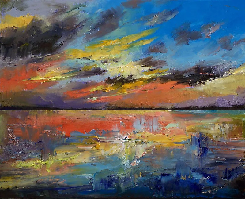 Michael paints in the oil impasto style, a technique used in art where paint is laid thickly on canvas, leaving visible brush/palette knife strokes.
