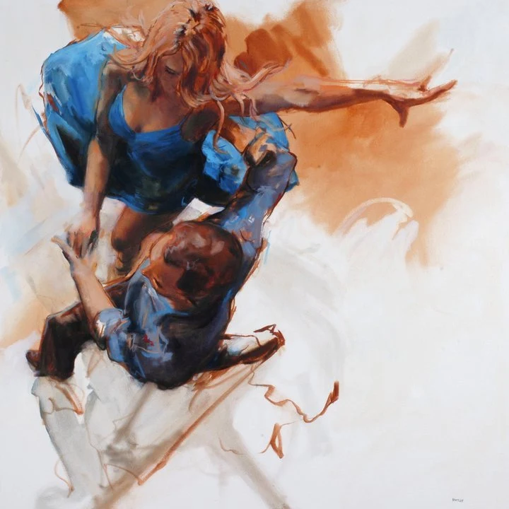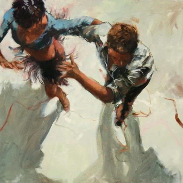 We, as people, are bound to the ones we love: we circle one another, we flirt, we pursue, we play, we cry, we want from another. My work has used dancing and playing couples to explore these dynamics".