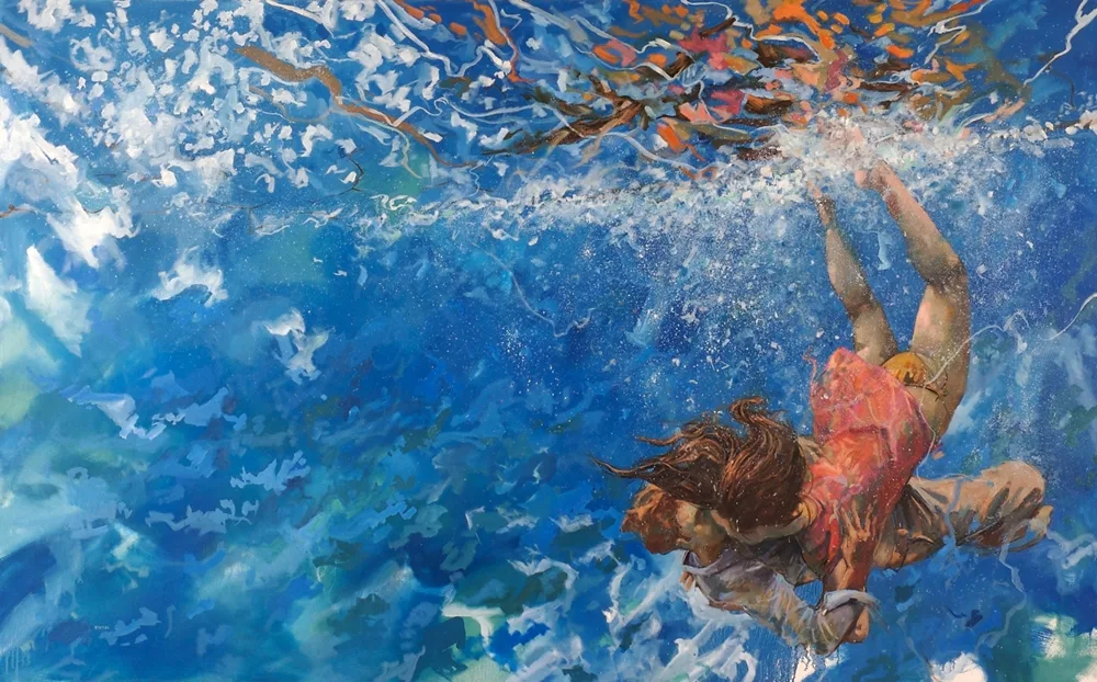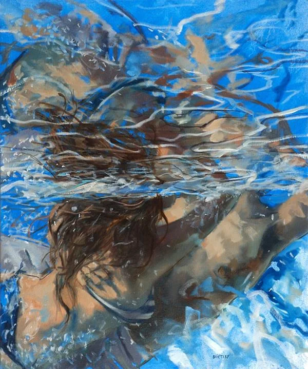 "Years ago, I made a group of paintings called the Water Series. During my first year of marriage, I convinced my young wife to sit, swim, and roll through a cold mountain stream while I painted her from shore.