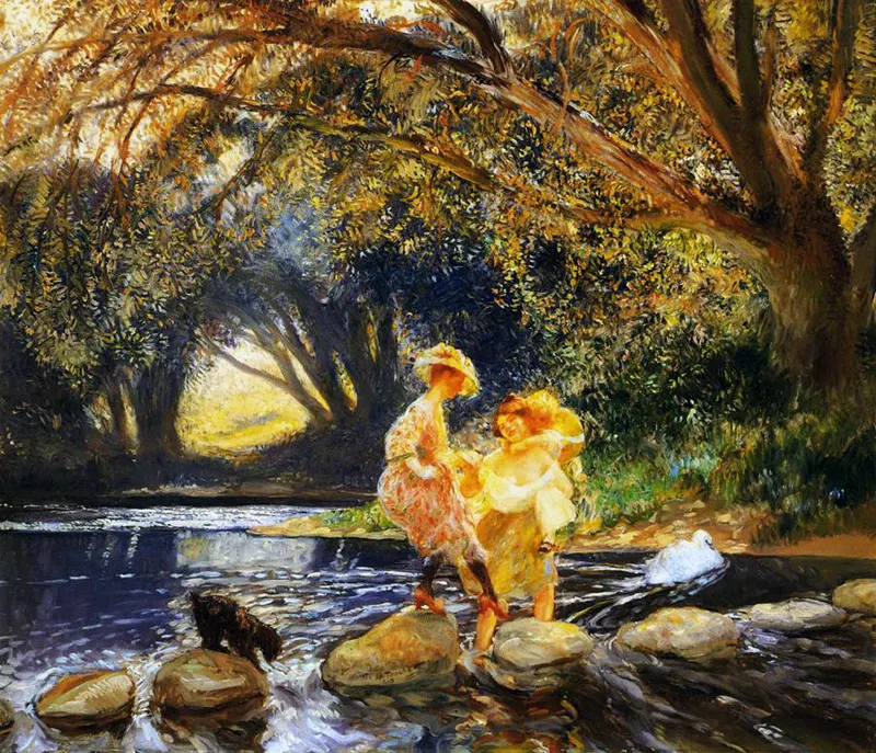 La Touche's brilliant jewel tones and the relaxed poses of the women contribute to the airy and carefree atmosphere of this painting, recalling the Rococo scenes of the previous generation.