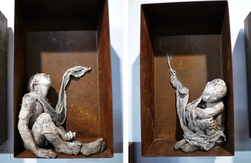Or the perception of familiarity in the body gestures carved work shows a simple everyday trying to be connected.