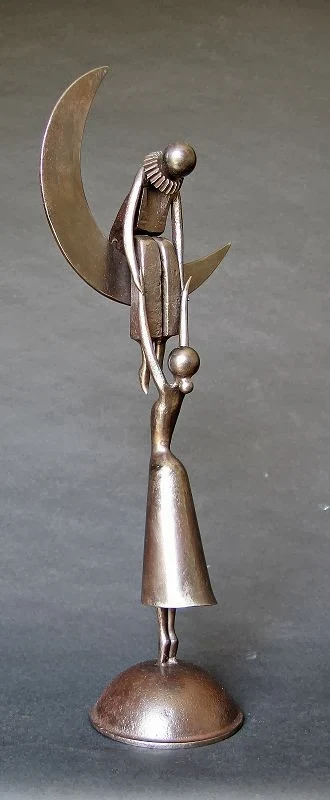 Old tools and iron pieces are an inspiration to Jean-Pierre Augier, who gathers and turns them into characters or animals on the move. His favourite themes are woman, couple, motherhood, fables and tales, mythology and religion. His works are recognized as having «four cardinal virtues»: grace, movement, tenderness and humour.