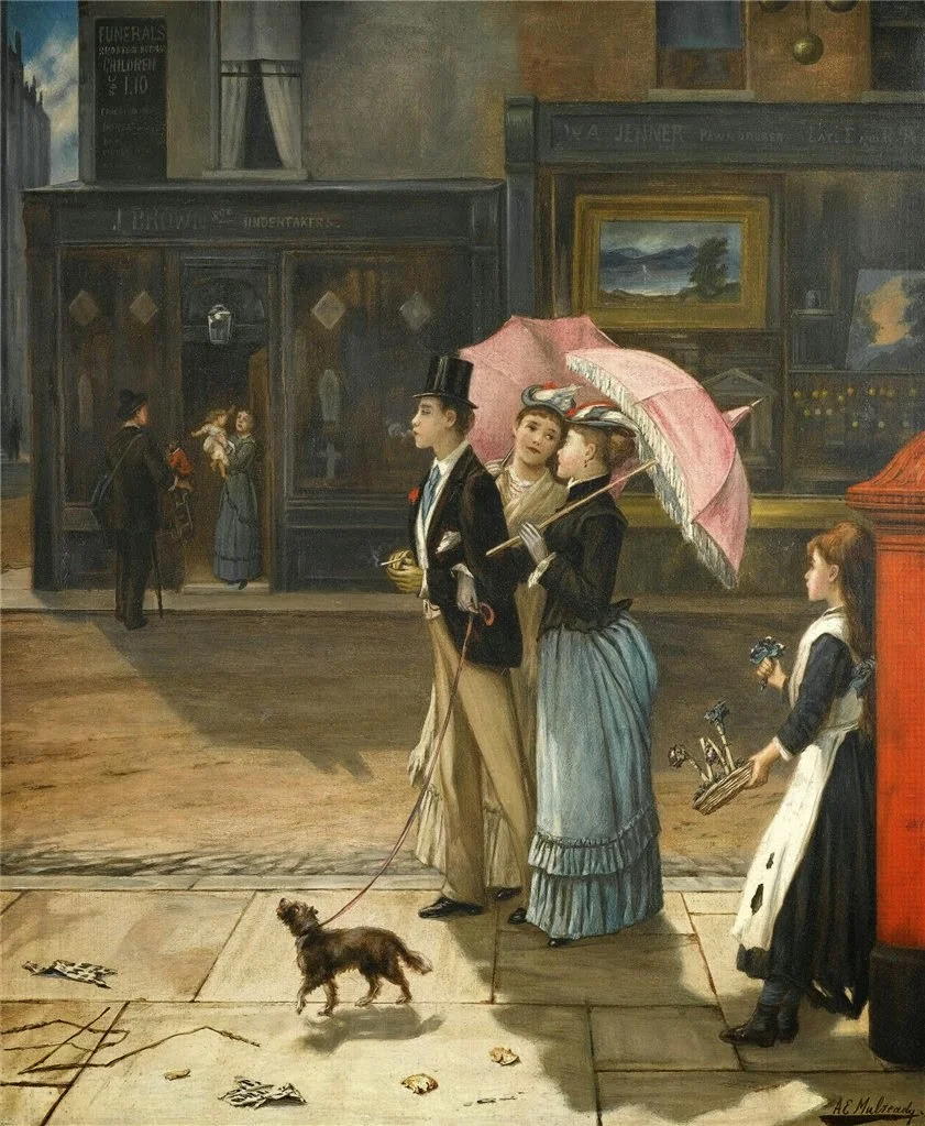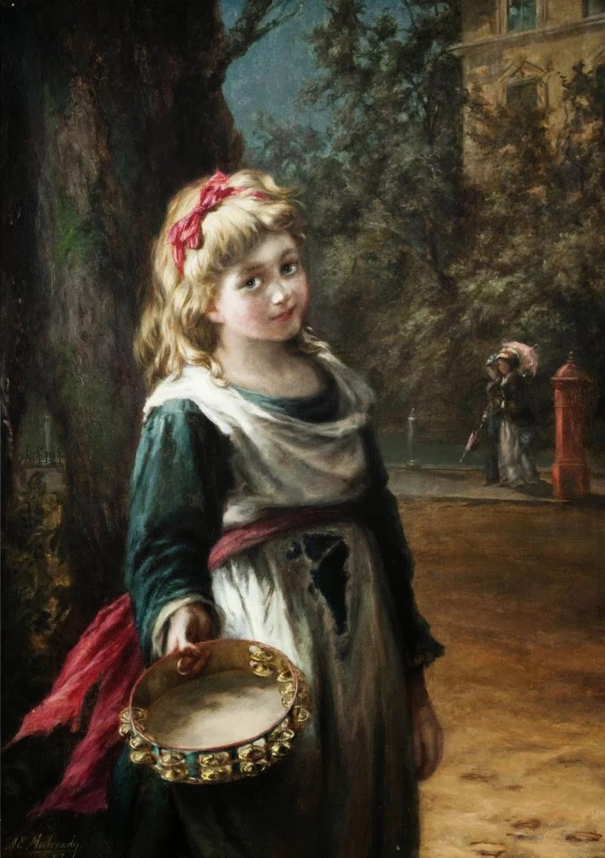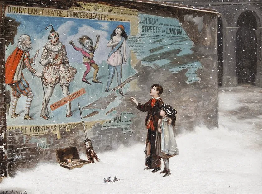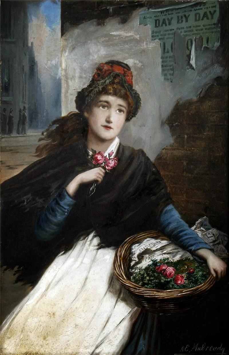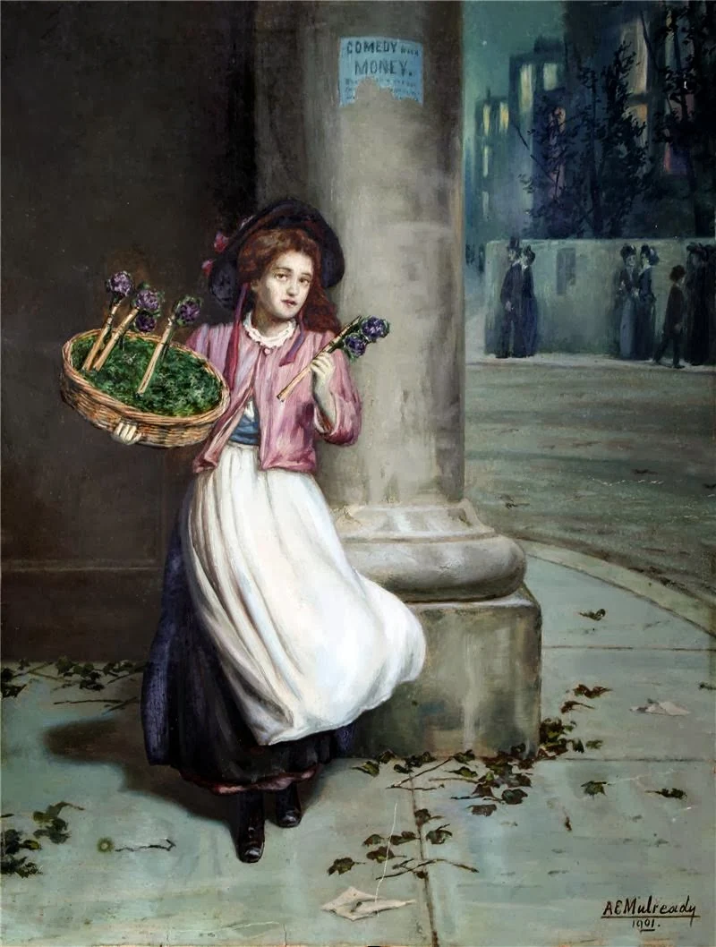 British painter Augustus Edwin Mulready (1844-1904) was an Genre painter specializing in street scenes of London's underbelly - street urchins were a favorite subject.