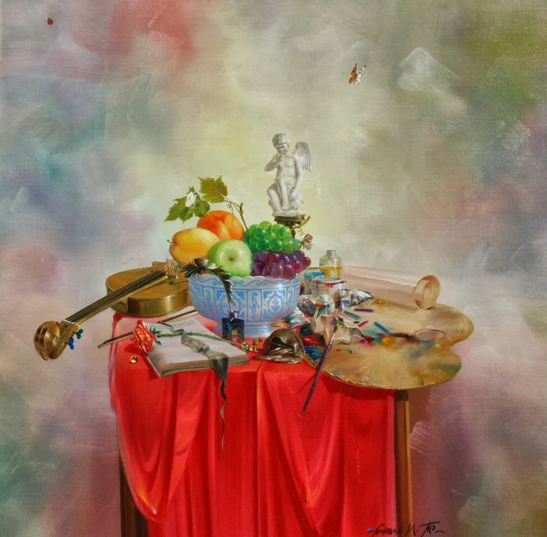 Gorban's art is wonderfully diverse in subject. His paintings are always consistent in their quality and his creativity and vision are boundless. Misha's paintings have a rare ability to engage the viewer. One sees the children as if they were their own, and the violin as if he was the musician and the windows with an undeniable sense of the comfort and security of hearth and home. Born in the town of Jagovka in the Ukraine, he is the son of a teacher and a doctor. Misha was in the 4th grade when his family moved to Kishinev in Moldova in the former Soviet Union. They moved to enable Gorban to study art for 3 hours a day during elementary school. Even at this young age he was thought to be a prodigy. Altogether Gorban studied art for 21 years. When asked why he says that when painting he wanted only to think about what to paint not how to paint it. From 1982 when he graduated from the Academy for Painting in Lvov to the present he has been the recipient of numerous honors and one man shows. His painting, The Spring of the Land was shown in an exhibition at the most prestigious of museums, the Hermitage in Leningrad. He is currently living in Israel with his wife and children. We think that you will be surprised with the range of Gorban's paintings. Though the themes are varied the common denominator is certainly in the exquisite mastery of his work. His works have been exhibited extensively in Russia, Europe, Israel, Japan, Canada and in the United States.