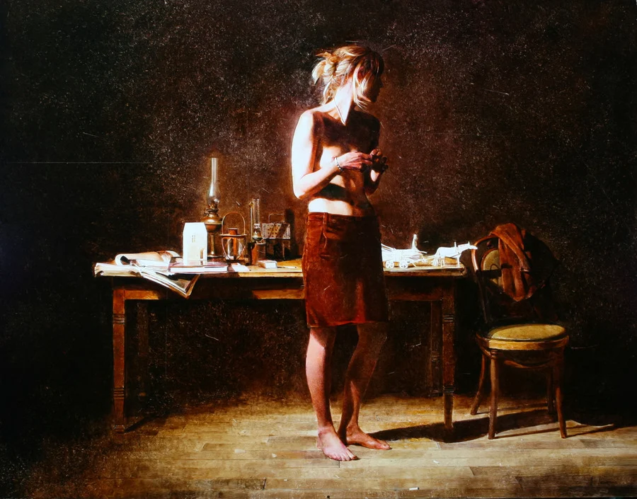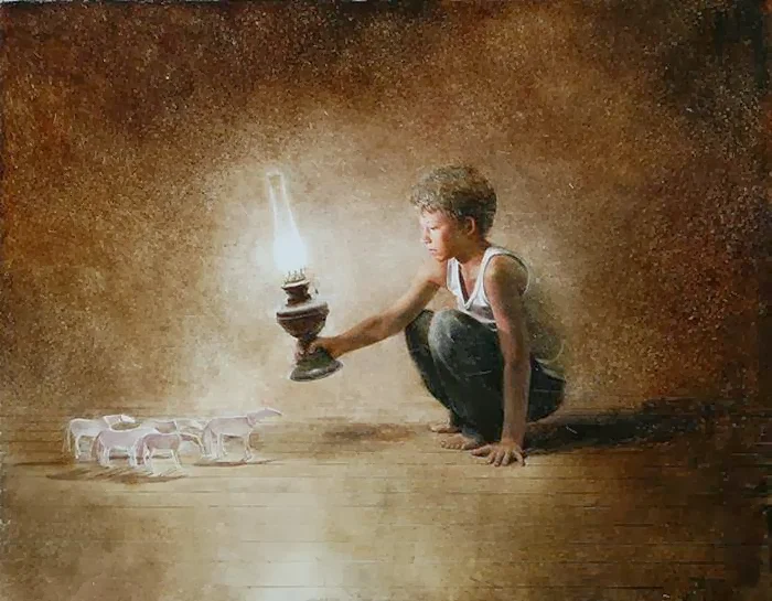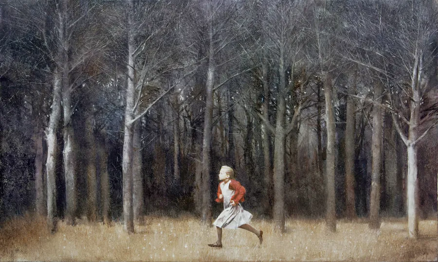 Andrew draws inspiration from his memories of childhood, combining reality and imagination in his paintings.