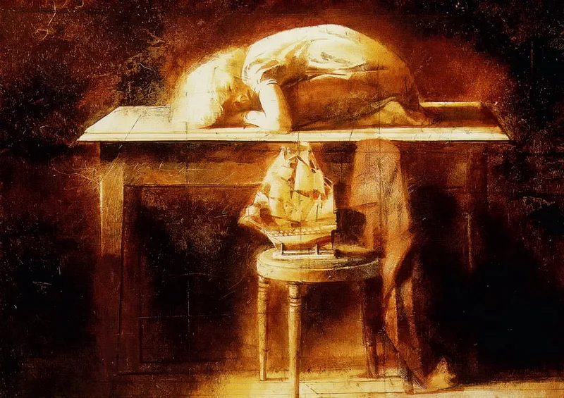 Likewise, he was drawn to the evocatively melodramatic atmosphere of Rembrandt's paintings though only initially having seen black and white reproductions.