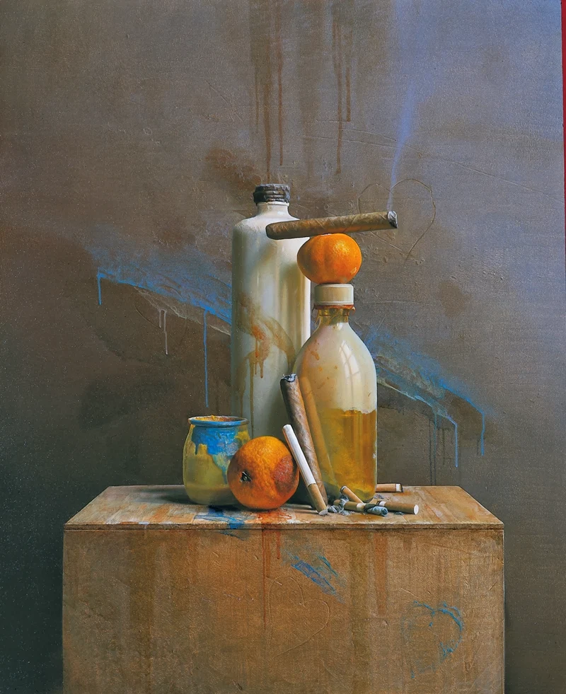 For about fifteen years he painted a series of large-scale self-portraits, aggressive and theatrical in character, which gave him an ambiguous reputation with dealers and the public. It was written that he 'painted like an assassin'. His paintings began to know real success only from 1988 onwards, when the artist abandoned his disturbing images and began to concentrate and further elaborate on his technique, which is still evolving.