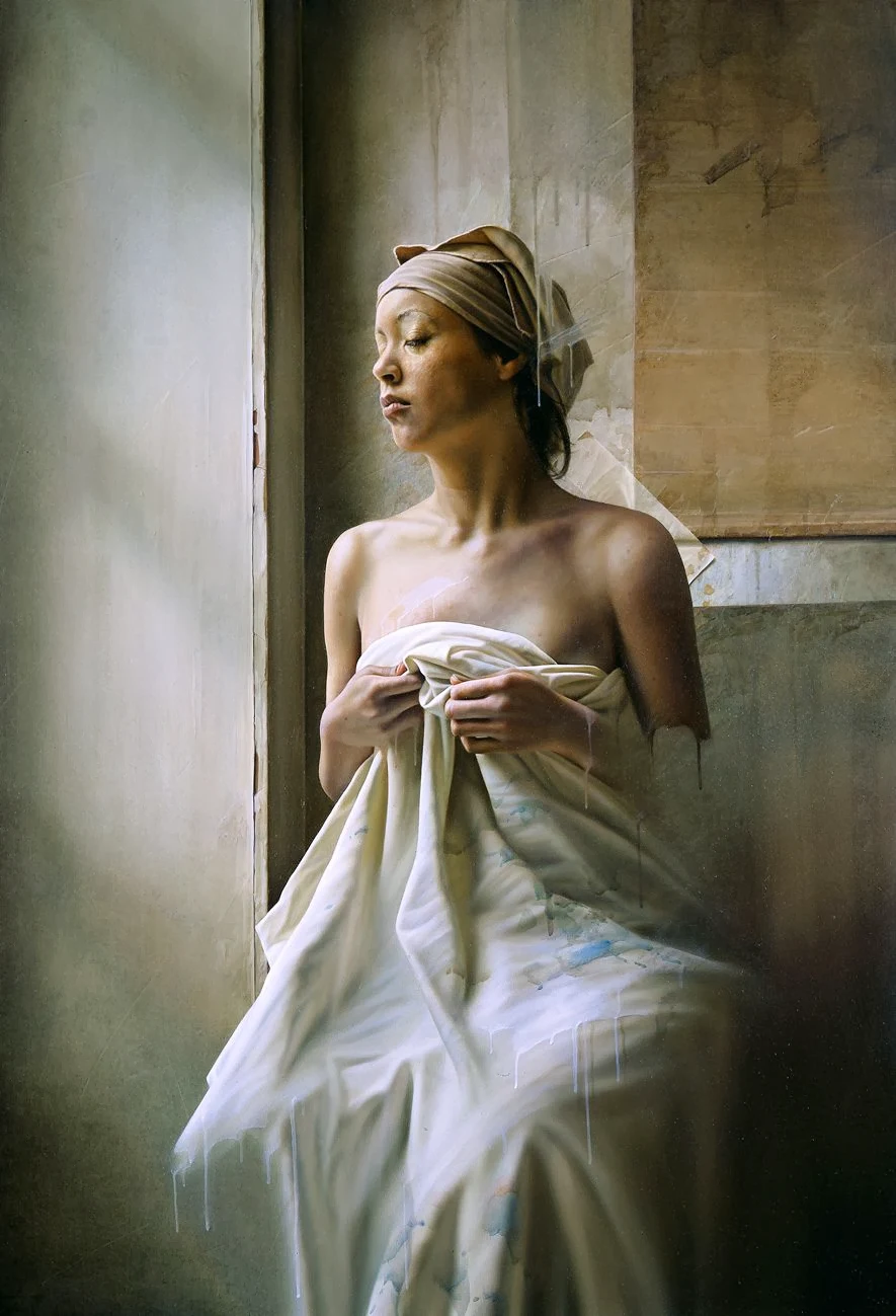 He mastered what art critics now term hyperrealism. But he did so with his very own blend of Surreal🎨 elements. Having been introduced to oil painting at the age of 12, Sandorfi🎨 dedicated much of his life to perfecting his painting techniques in order to achieve the photoreal and at the same time pull the carpet away under the viewer by letting part of a person dissappear in thin air.