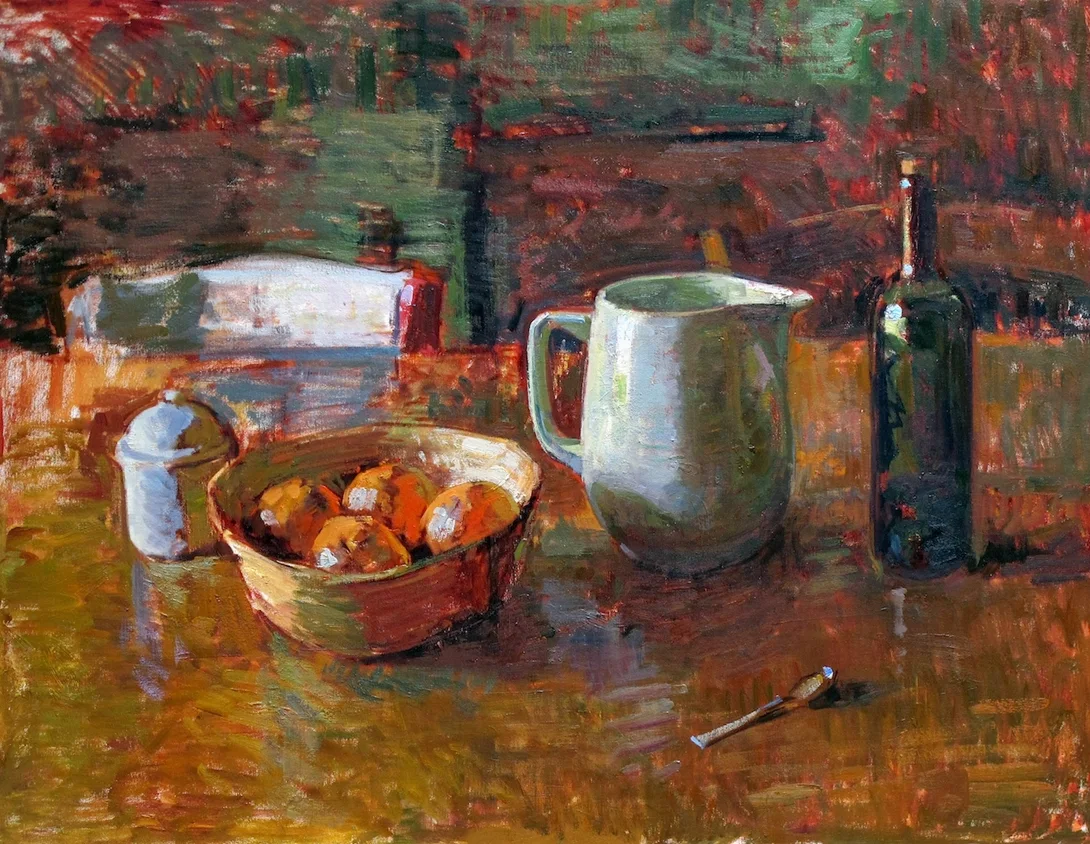 From an abstract lavender hued “Spring Still Life” to the elegantly reflective “Open Window”, Fenske’s paintings continue to mesmerize us. Another major development is that others are noticing and writing about his genius. In a December 2010 profile for American Artist Magazine , senior edi - tor Michael Gormley writes, "Fenske is a brash handler of the brush, and he harbors little regard for restraint. This expression of raw emotion stands out considerably from the new practitioners of this century’s realism... Fenske dares to show his hand. His mark making evidences an authentic humanness, what one sees in Homer’s art". Following a childhood of drawing and painting, Fenske briefly studied drawing with Peter Bougie and landscape painting with Joseph Paquet in Minneapolis.
