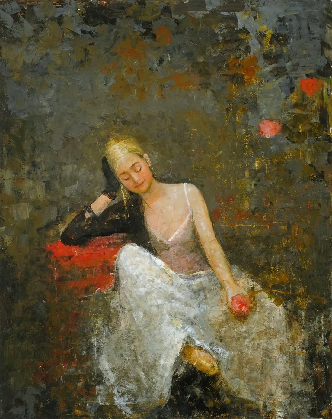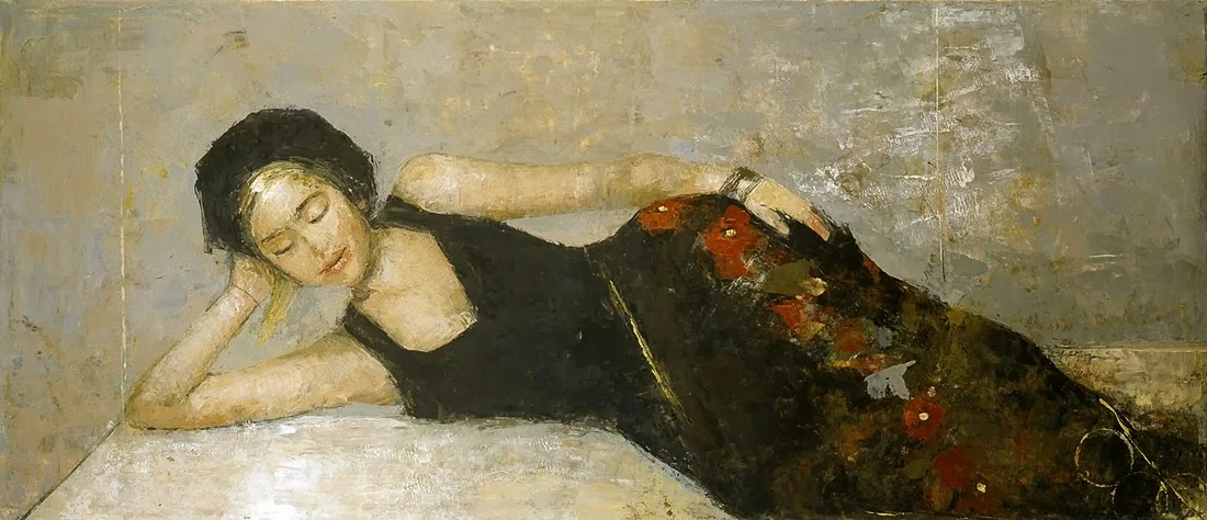 Her encaustic works on canvas defy categorization. Although she draws inspiration from ancient frescos, her paintings have a very contemporary feel. Goxwa explores all genres, yet all of her paintings have the same element of mystery and intrigue. In 1993 she had her first of many solo exhibitions. Since then she has shown in various cities including Paris, New York, Strasbourg and San Francisco. Goxwa currently resides in Paris and her exhibitions continue to draw crowds of admirers and collectors.