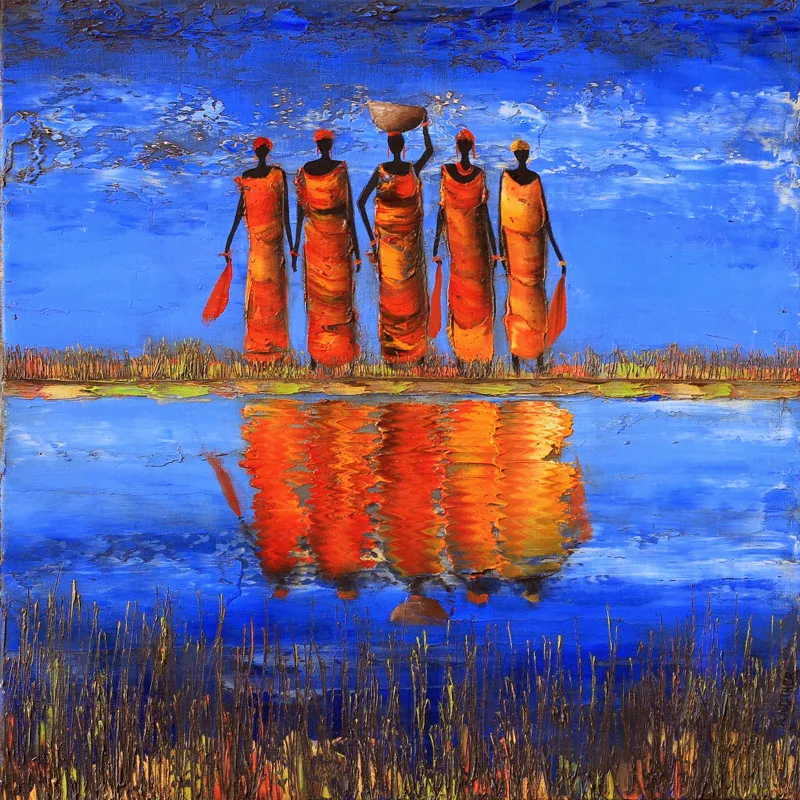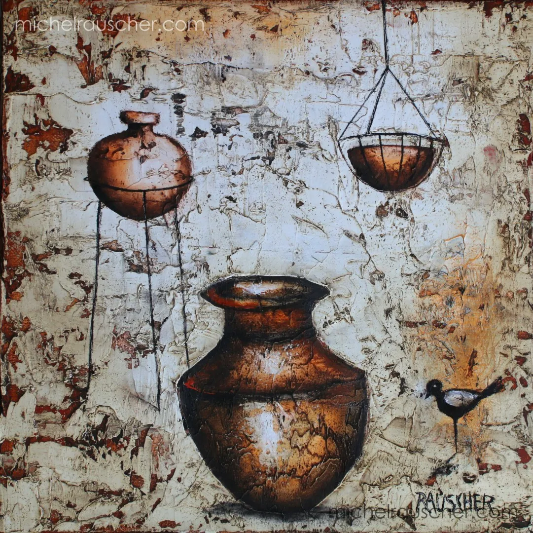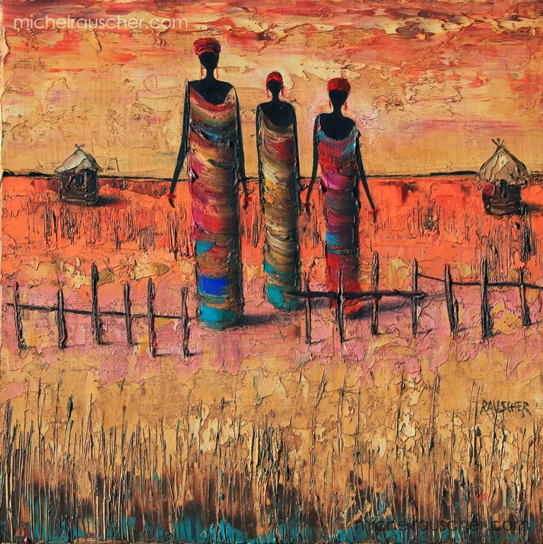 "I like to blend into the local scene and observe the past being reborn from the cover of the present".Working primarily with oil on wood and canvas, Michel creates stylized scenes of African life and elsewhere, complete with its sadness, joys and mystery. His pieces have been exhibited throughout France, including Paris, Lyon and Strasbourg, as well as Luxembourg, Germany and the Netherlands and he has traveled extensively throughout Asia. His paintings know no boundaries, and are an interpretation of his dreams, his passions, and of places that are everywhere and nowhere. Michel has been commissioned by Amnesty International to create brochures and cards.