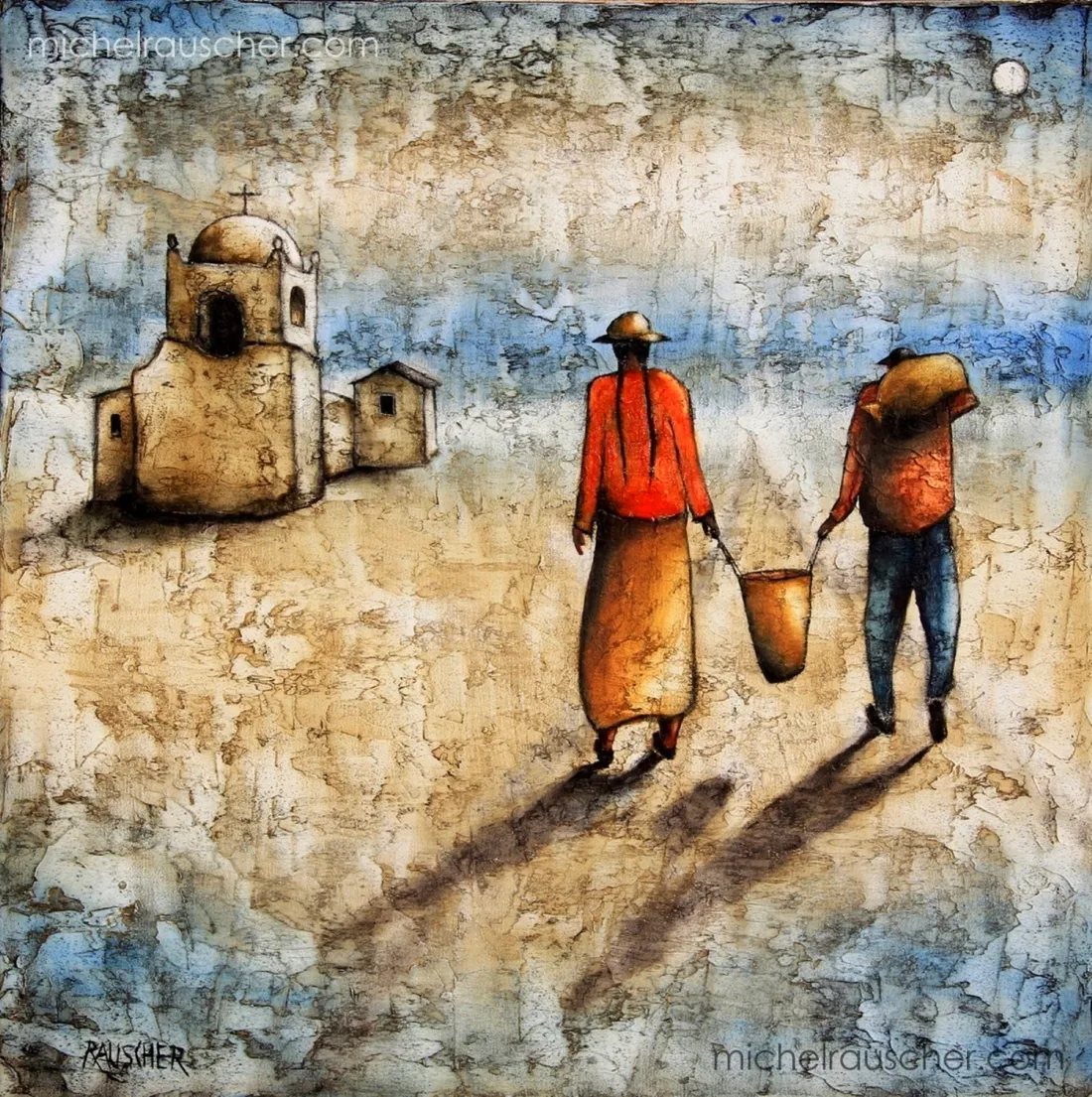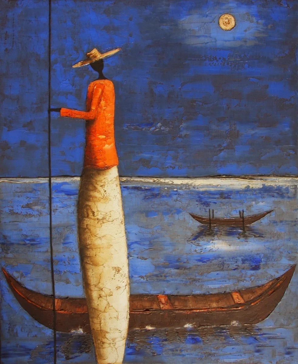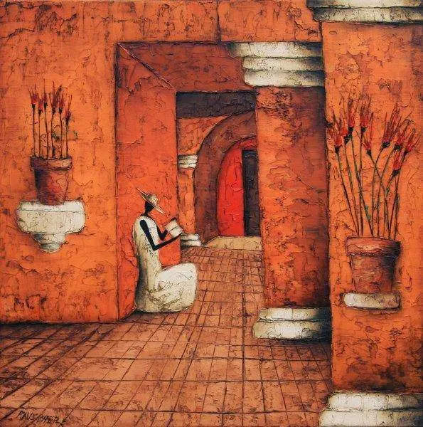 "I like to blend into the local scene and observe the past being reborn from the cover of the present".Working primarily with oil on wood and canvas, Michel creates stylized scenes of African life and elsewhere, complete with its sadness, joys and mystery. His pieces have been exhibited throughout France, including Paris, Lyon and Strasbourg, as well as Luxembourg, Germany and the Netherlands and he has traveled extensively throughout Asia. His paintings know no boundaries, and are an interpretation of his dreams, his passions, and of places that are everywhere and nowhere. Michel has been commissioned by Amnesty International to create brochures and cards.