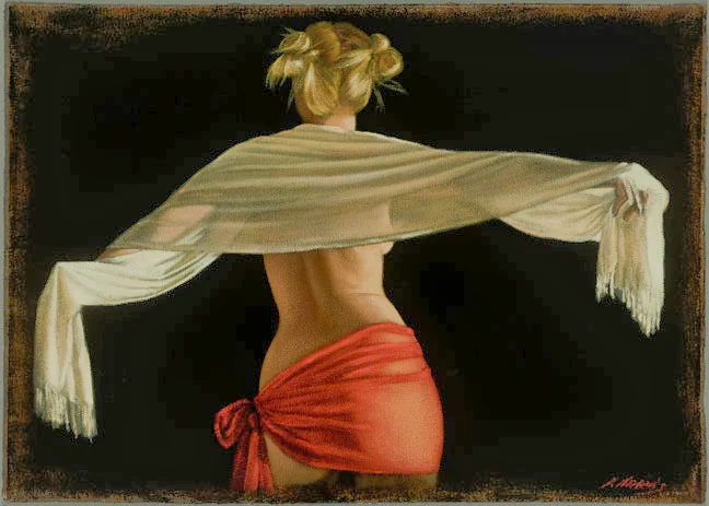Her favorite subject to paint is the human figure from which she brings a reality to the paintings where attention to detail is as strong as attention to the character of the model. In her artwork, we are in the company of beautiful men and women, intimately poised and positioned.