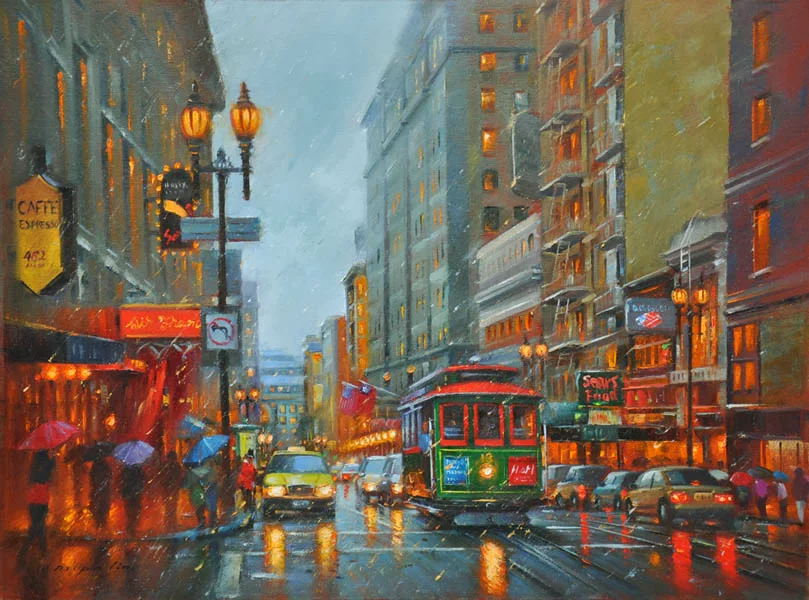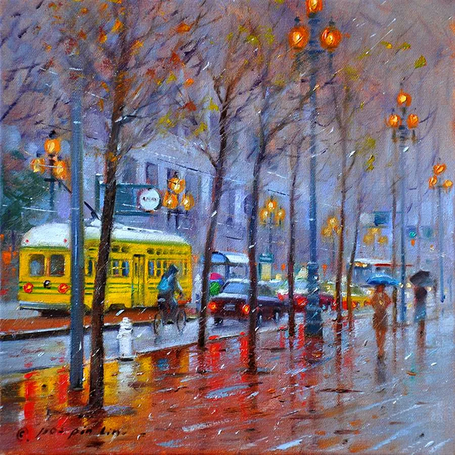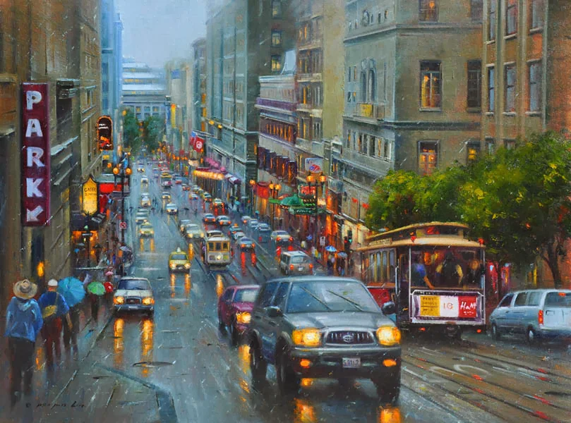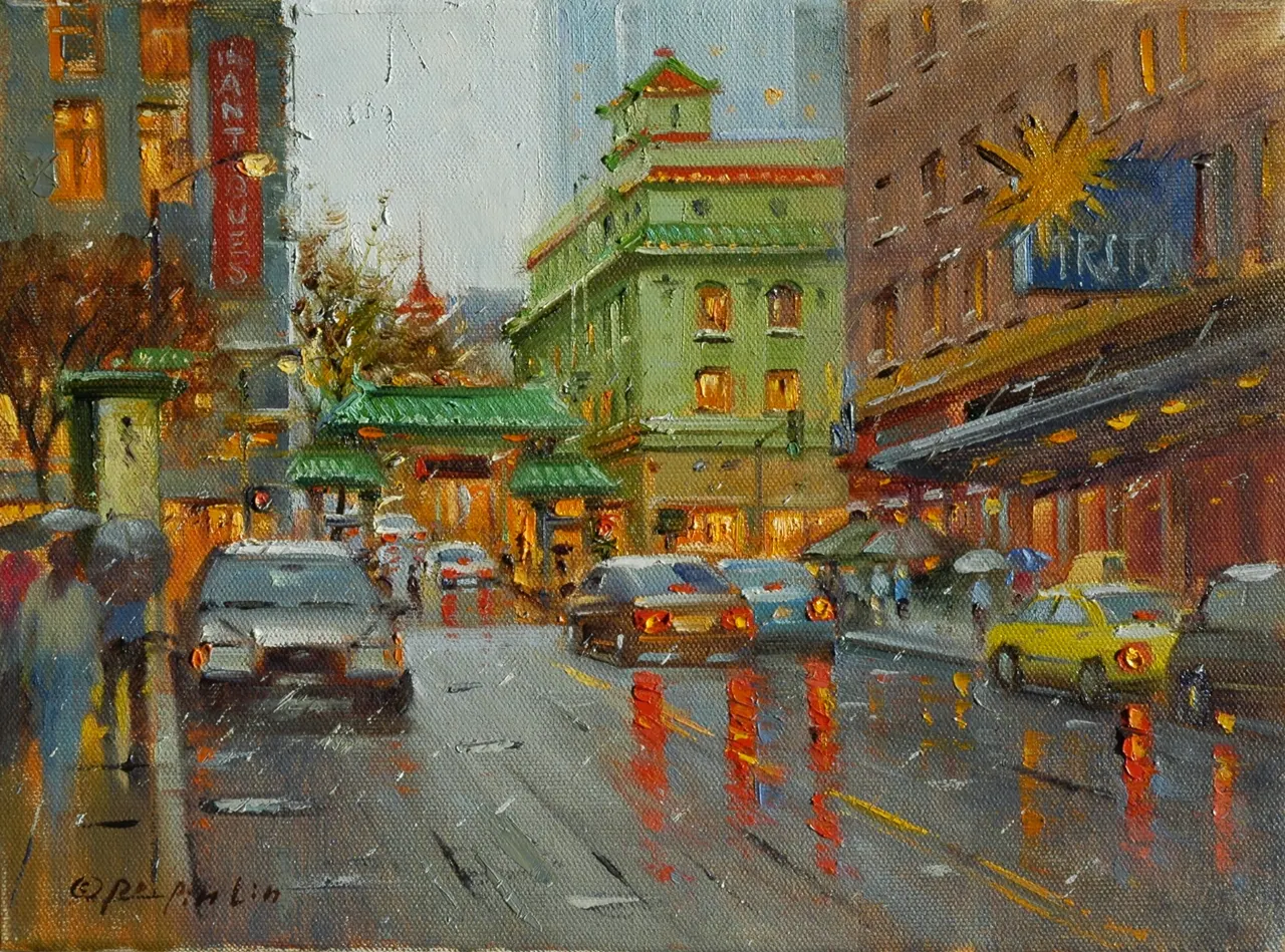 In 1995 he moved to the United States to study at the Academy of Art College in San Francisco, where he earned both undergraduate and graduate degrees. With more than 10 years of his professional career as a teacher and painter, Po Pin has become known for the cityscapes and street scenes of his adapted hometown of San Francisco. He has enchanted the American fine art market with his mastery of capturing subtlety in the California landscape.