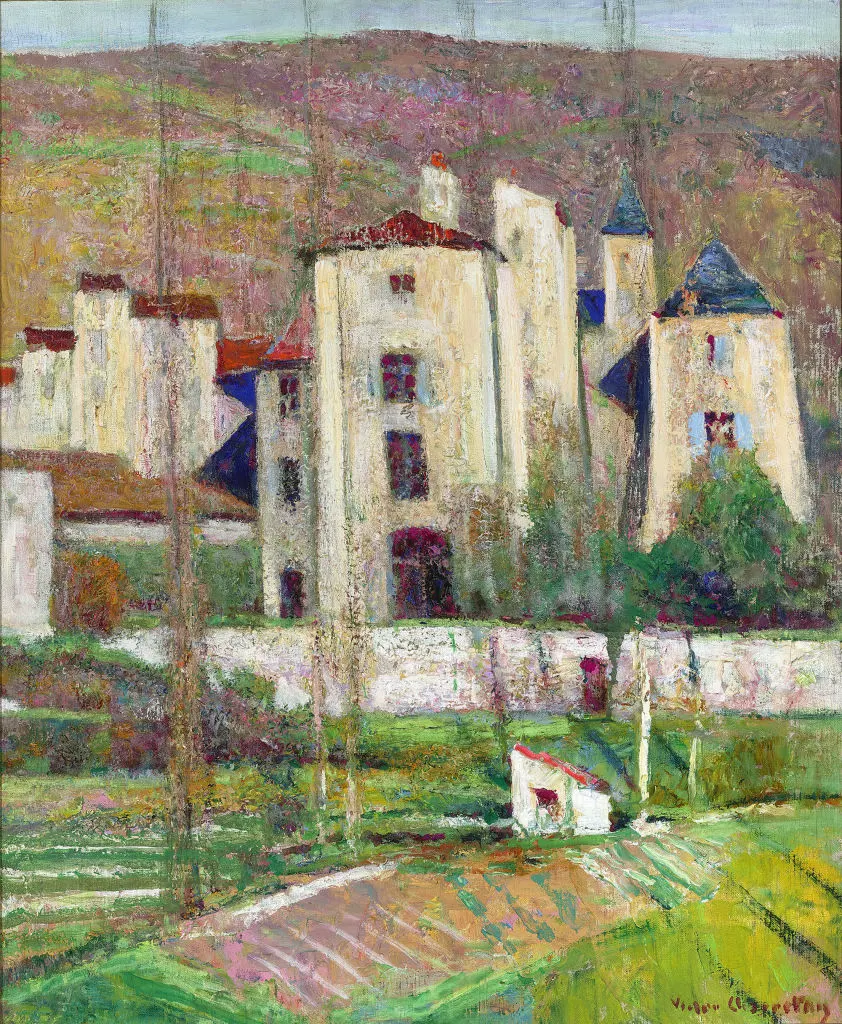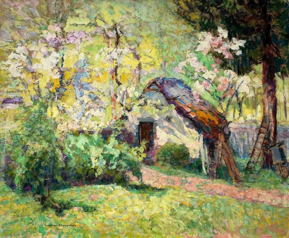 His evolution tended towards a use of richer and brighter colours, notably in the mauves and violets which characterize his style. Victor Charreton is famous for his landscapes and still-life paintings, often sharing Impressionist preoccupations whilst trying to capture momentary effects of specific times of day or seasons, at sunset or in a snowy landscape.