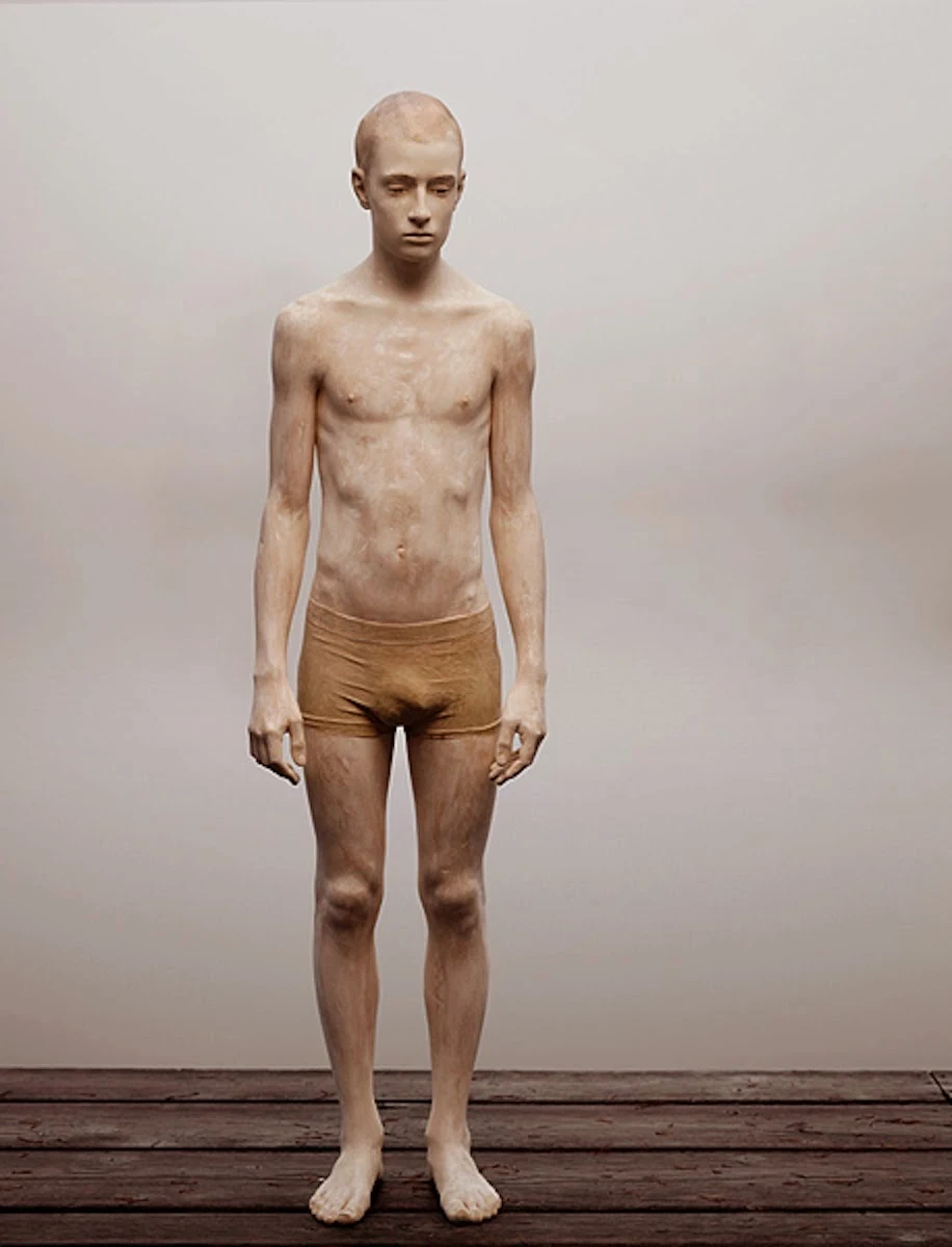 Drawing from his ancestry along with contemporary ideas inspired from other forms of art, Walpoth transforms his blocks of wood into detailed sculptures of the human body.