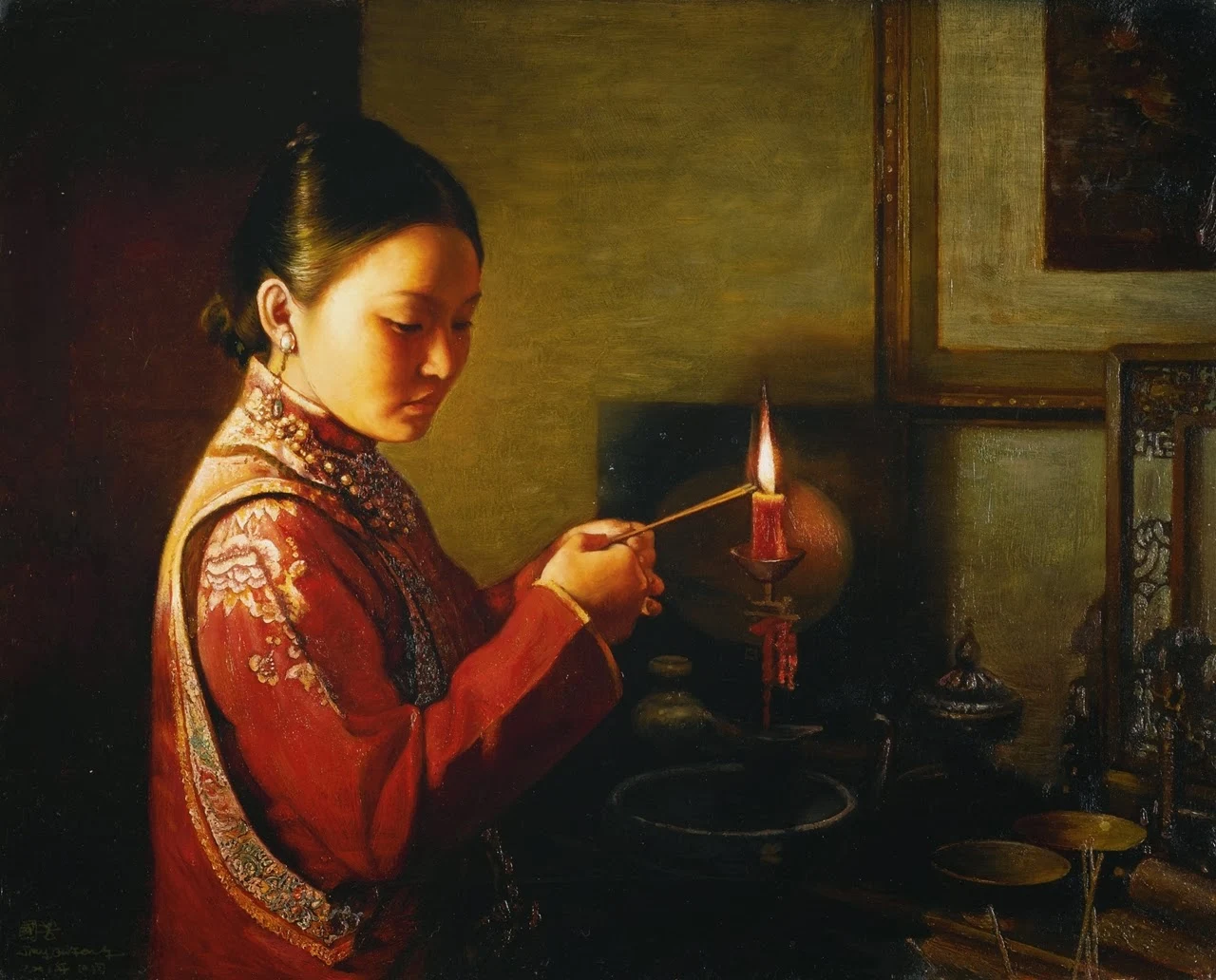 Per capire perchè Jiang Guofang abbia iniziato la creazione dei dipinti ad olio della serie della Città Proibita, occorre risalire al suo primo anno di studi all'Accademia centrale d' arte. Era la prima volta che egli veniva a Pechino ed entrato nella Città Proibita, la grandiosa e meravigliosa scena che si è parata dinanzi ai suoi occhi ha lasciato senza fiato questo studente proveniente dalla lontana provincia del Jiangxi. Egli pensava: chi è vissuto alla fin fine in questi palazzi? Questo è il motivo iniziale della sua attenzione per la cultura imperiale.