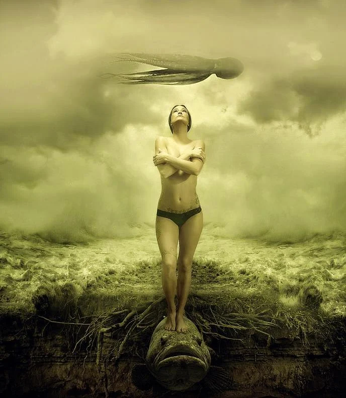 Amandine Van Ray is an Estonia-based artist (from Tallinn) who creates Surreal artworks with the use of both photography and digital art. In her works, her subjects portray very expressive emotions as they are surrounded by a Surreal world filled with floating creatures and such.
