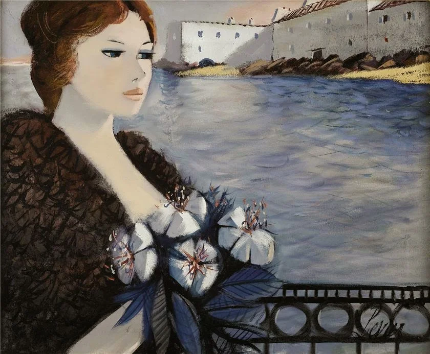 Levier is most known for his Abstracted Post-Impressionistic still lifes and cityscapes of harbor towns as well as female studies as seen in "A La Fenetre".