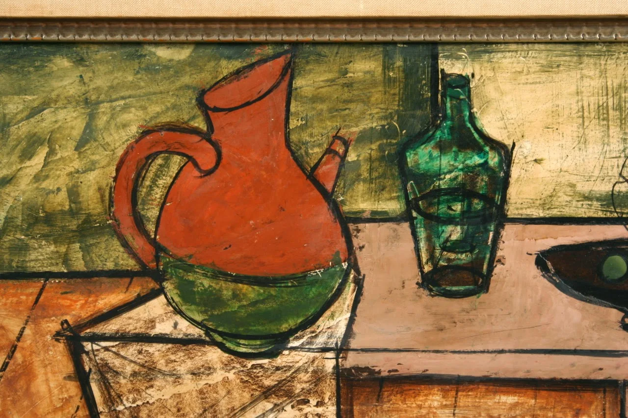In many instances, Levier employed a Cubist technique. The line delineation shown in "A La Fenetre" recalls the simple techniques so frequently found in Cubism. Several artists, like Levier, continued to paint in the Cubist manner well into the 20th century.