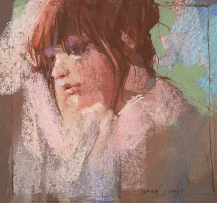 Derek works with pastel, charcoal, watercolor, gouache, acrylic and intaglio printmaking, painting directly from models. Also, he produces screen prints and etchings.