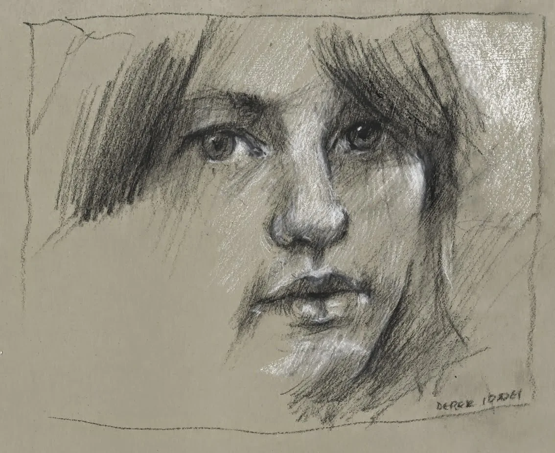 Painting is the most personal art form to Derek: 'I don't see drawing as a preparation or study for painting but as the most direct and intimate of art forms. In a drawing you can see the artist think and respond and feel the trace of his hand'.